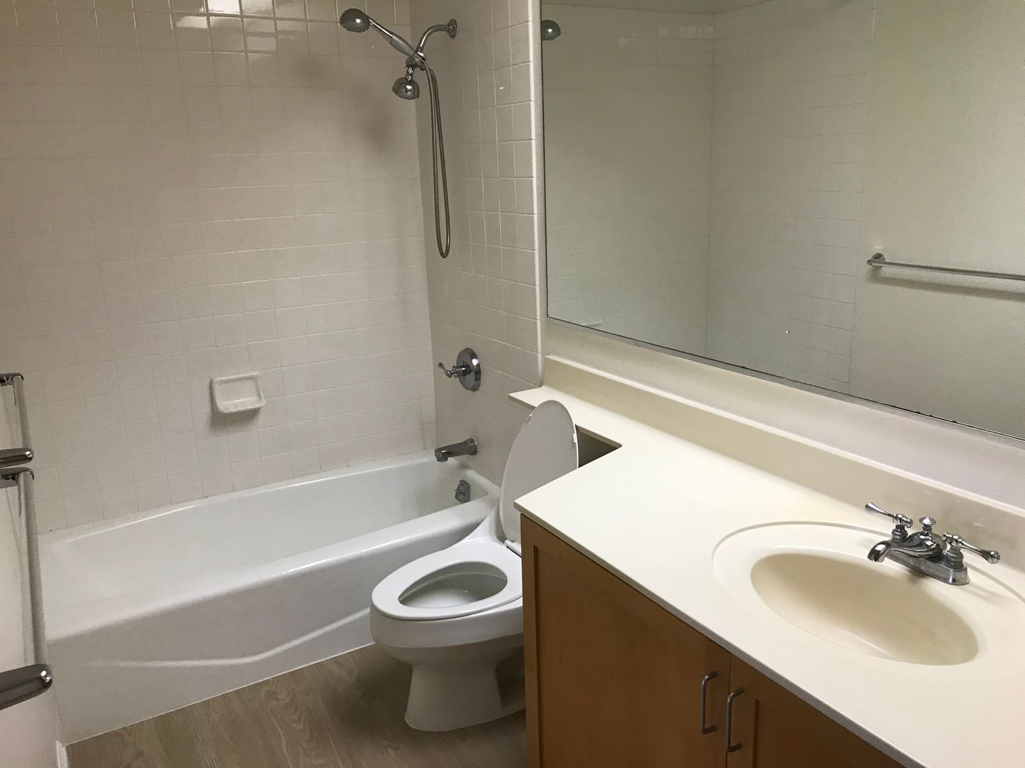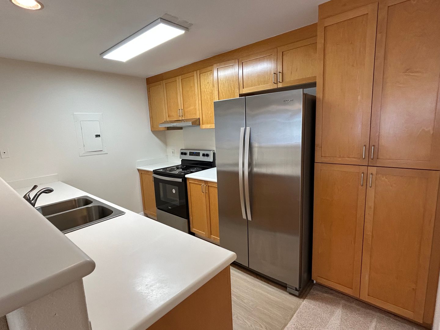 Kitchen has newer stainless steel glass top stove/oven and refrigerator + newer stainless steel kitchen sink and faucet. Large bathroom with bathtub and plenty of storage closets.