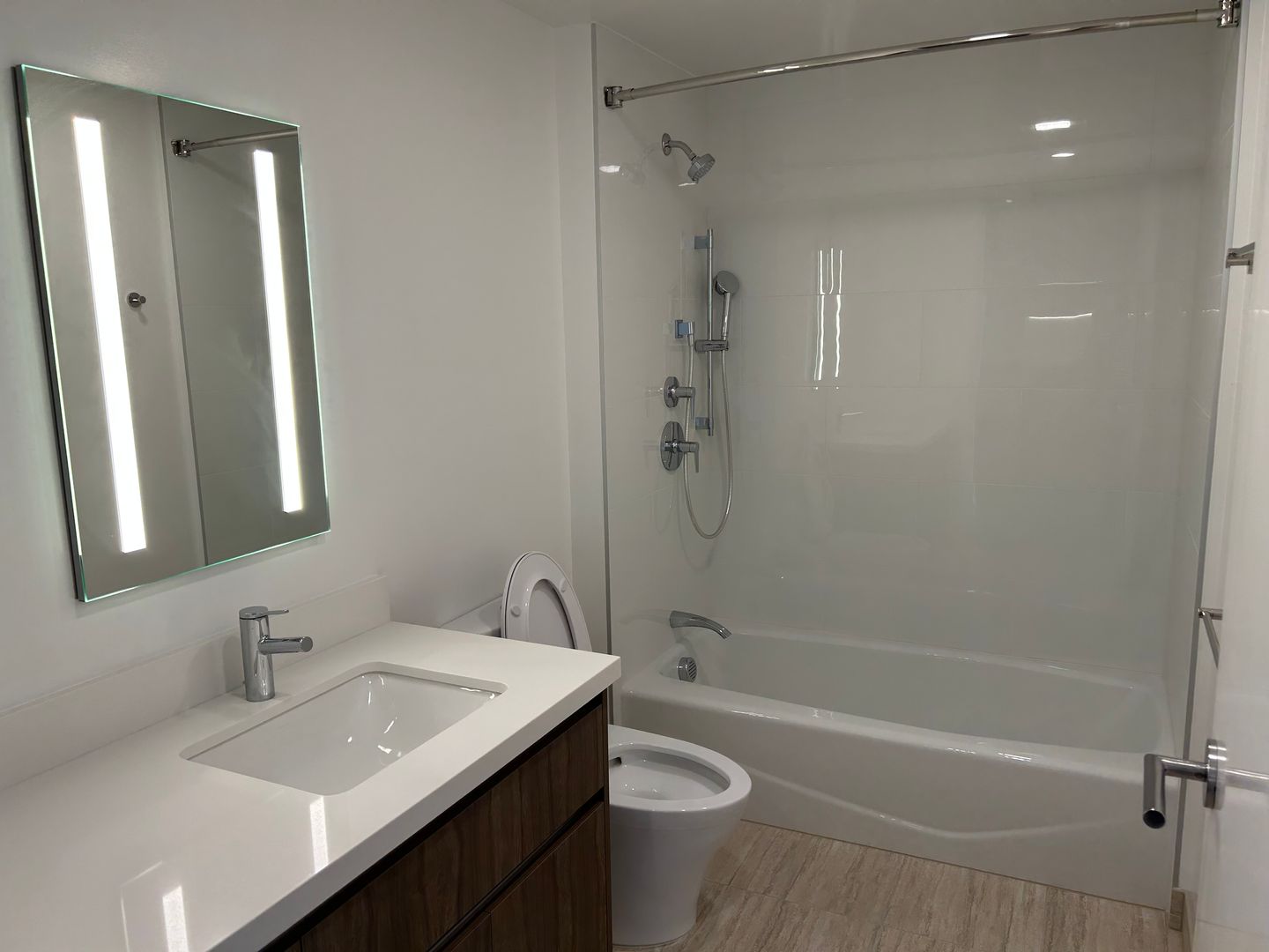 Upscale building amenities include: Infinity pool, fitness center, yoga studio, sauna, Co-working space, movie theatre and BBQ pavilions.
